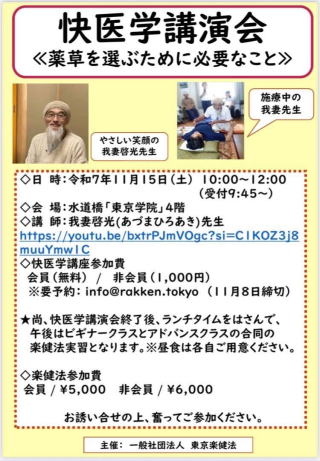 下に、令和 5 年 11 月に東京楽健法会員宛に発信したお知らせを添付いたしますのでご一読願います