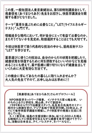 テーマ:「快医学」我妻啓光(あづまひろあき)先生講演会